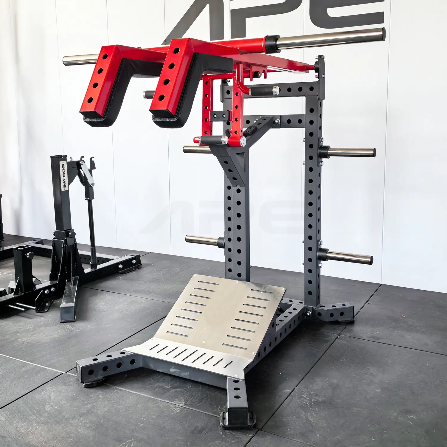 HACK SQUATSPECIFICATIONS & FEATURES:Color: Black+gold, red, green, etc.;Main Frame Size: 50x100x2.5mm (Flat Oval Steel Tube); Or, 75x75x2.5mm/50x80x2.5mm (Square Steel Tube/Rectangle Steel Tube);N.W/G.W: 120/150kg;Max Load: 300kg;Product Dimension: 1360x1500x1500mm;Packing Dimension: 1600x1050x600mm;Logo: SOKWE®, or any customized logo. Light Commerical SOKWE® Hack Squat Machine Video: https://youtu.be/LTqHoJWZNnM YOU MIGHT ALSO LIKE MOTORLESS TREADMILL IIAPE FITNESS MAGNETIC ROWER - DUAL HANDLEAPE FITNESS HIGH & LOW PULLING MACHINEAPE FITNESS TANK SLED ProAPE FITNESS